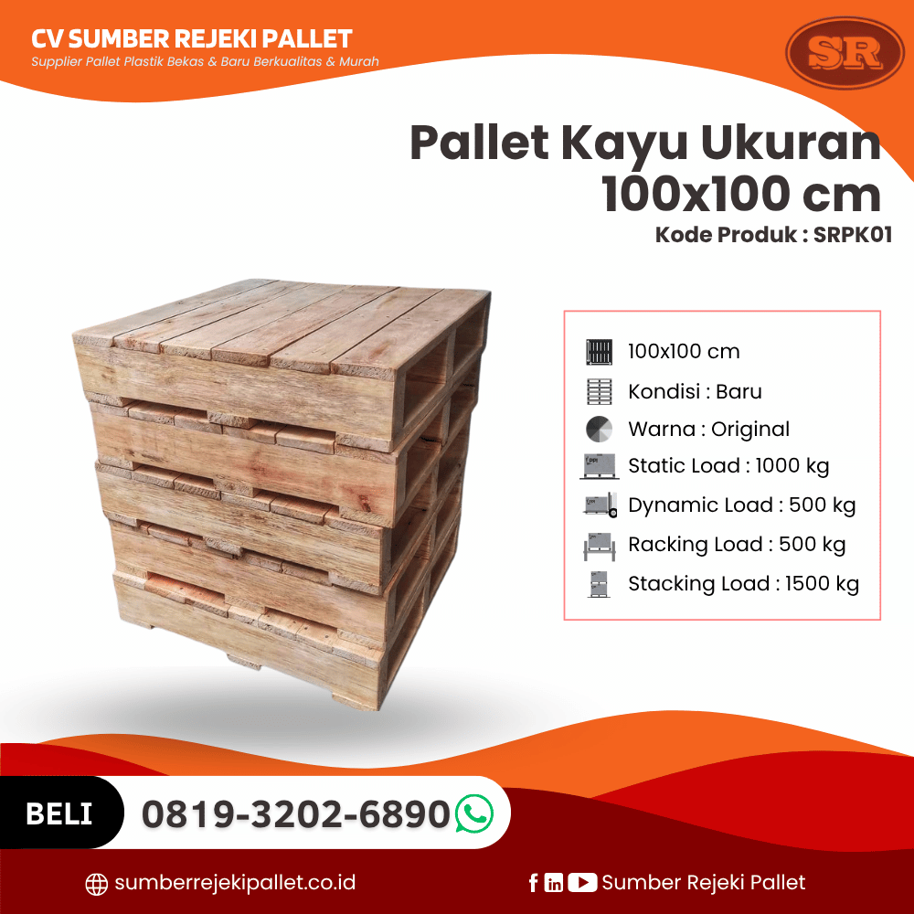 CV Sumber Rejeki Pallet dengan bangga mempersembahkan salah satu produk andalannya dalam kategori pallet kayu: Pallet Kayu SRPK03 Ukuran 110×120 cm. Produk ini dirancang khusus untuk memenuhi kebutuhan logistik modern, baik untuk kebutuhan domestik maupun ekspor. Dengan pengalaman kami di bidang penjualan pallet kayu baru dan bekas, kami memahami pentingnya kualitas, ketahanan, dan efisiensi dalam setiap unit pallet yang kami tawarkan.