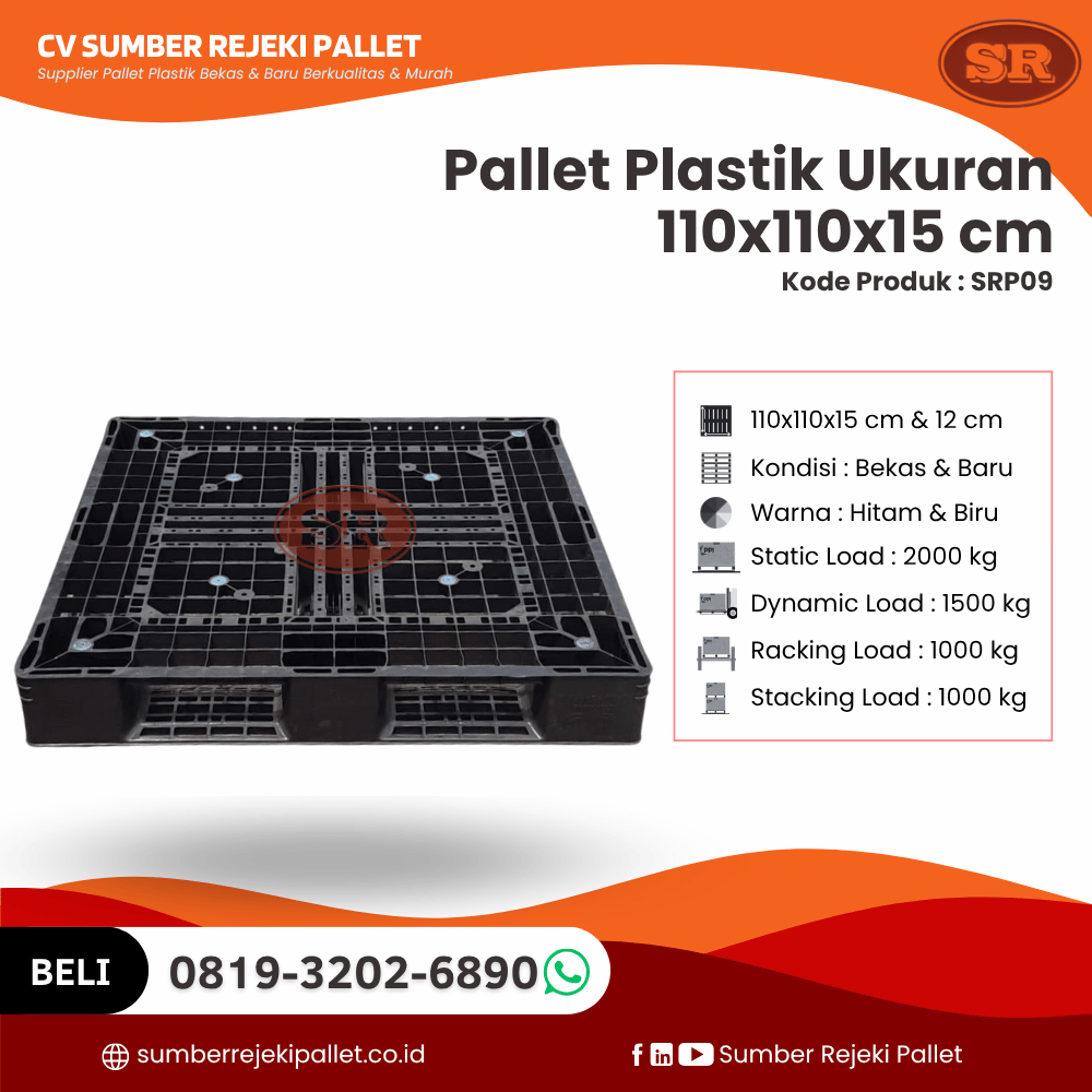 Dalam rantai pasok modern yang menuntut kecepatan, ketahanan, dan efisiensi, pemilihan media angkut barang menjadi hal krusial. Salah satu solusi yang paling efektif untuk menunjang kebutuhan tersebut adalah palet plastik yang kuat, tahan lama, dan sesuai standar ekspor. Untuk itu, CV Sumber Rejeki Pallet menghadirkan produk Andalan SRP09 , palet plastik berukuran 110x110x15 cm yang tersedia dalam kondisi baru maupun bekas berkualitas tinggi .