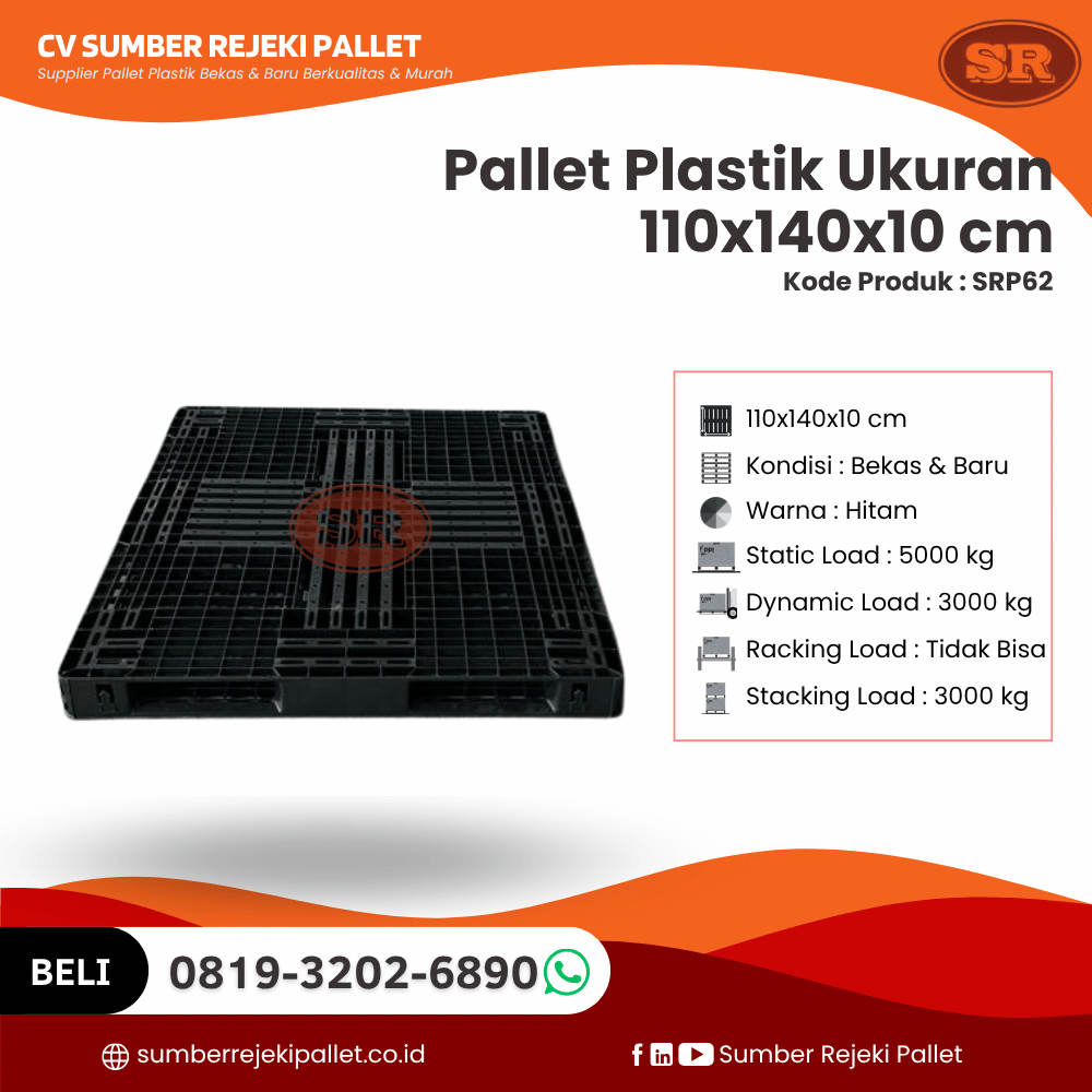 Dalam dunia industri dan distribusi modern, efisiensi dan efisiensi menjadi kunci utama dalam setiap kegiatan operasional. Menjawab kebutuhan tersebut, CV Sumber Rejeki Pallet , perusahaan terpercaya dalam menyediakan palet plastik baru dan bekas berkualitas, menghadirkan produk unggulan Pallet Plastik SRP62 berukuran 110x140x13 cm .