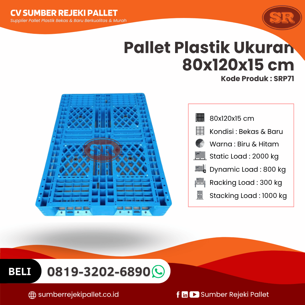 Dalam dunia industri dan distribusi modern, penggunaan pallet plastik menjadi elemen penting untuk mendukung kelancaran proses penyimpanan dan pengangkutan barang. Menyadari kebutuhan akan produk yang tangguh, praktis, dan ekonomis, CV Sumber Rejeki Pallet menghadirkan Pallet Plastik SRP71, solusi tepat bagi Anda yang mengutamakan efisiensi dalam setiap lini logistik.