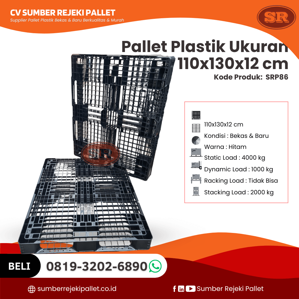 CV Sumber Rejeki Pallet dengan bangga mempersembahkan produk unggulan kami: Pallet Plastik SRP86 dengan ukuran 110x120x12 cm. Dirancang secara khusus untuk memenuhi kebutuhan sektor industri, logistik, manufaktur, distribusi, dan ekspor, pallet ini menawarkan kekuatan, efisiensi, serta ketahanan luar biasa di berbagai kondisi kerja.
